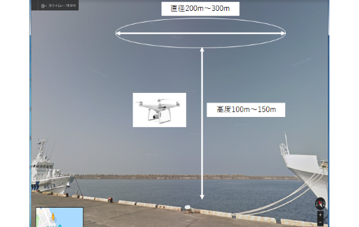 高度 100m ~ 150m 地点より広範囲な地域を捜索します。